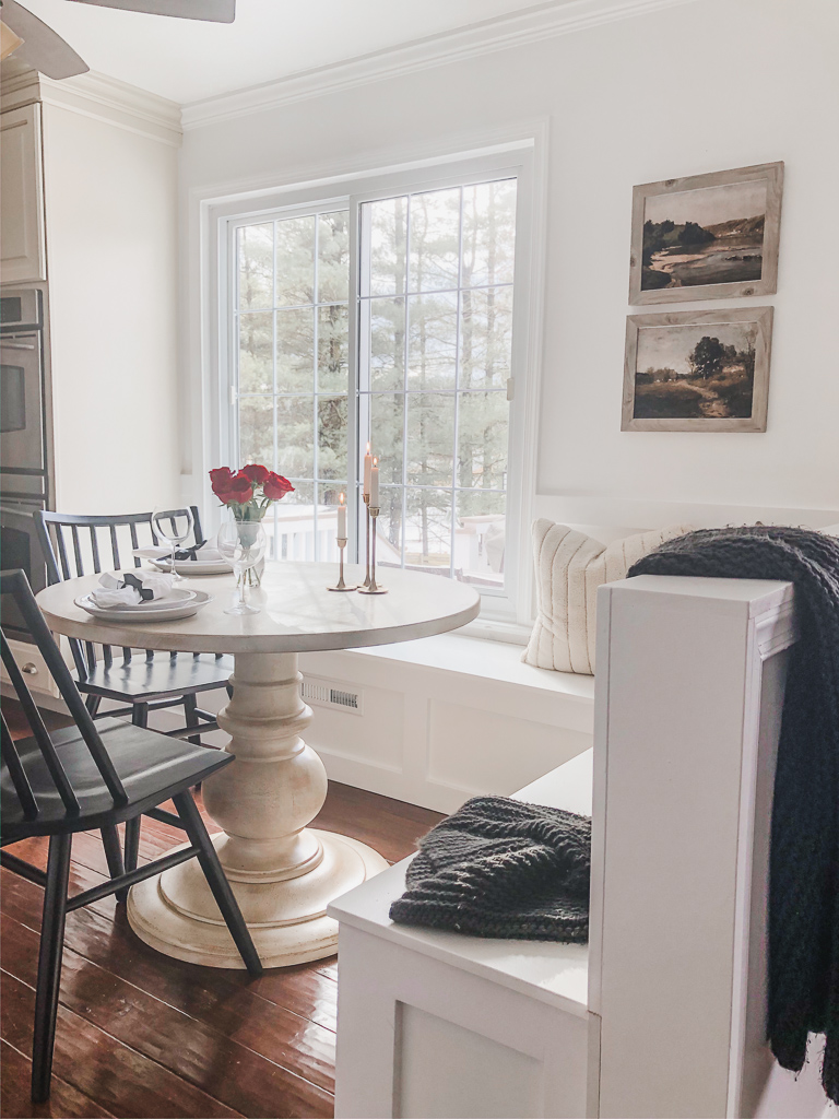 Happy Friday! I hope you’ve had a great week. Maryland was hit with lots of snow this week – and there’s still more to come. In the midst of the snow storms, we’ve been busy tackling another DIY project: our breakfast nook! I’ve been dreaming about this space for a couple years, so it was a no brainer…